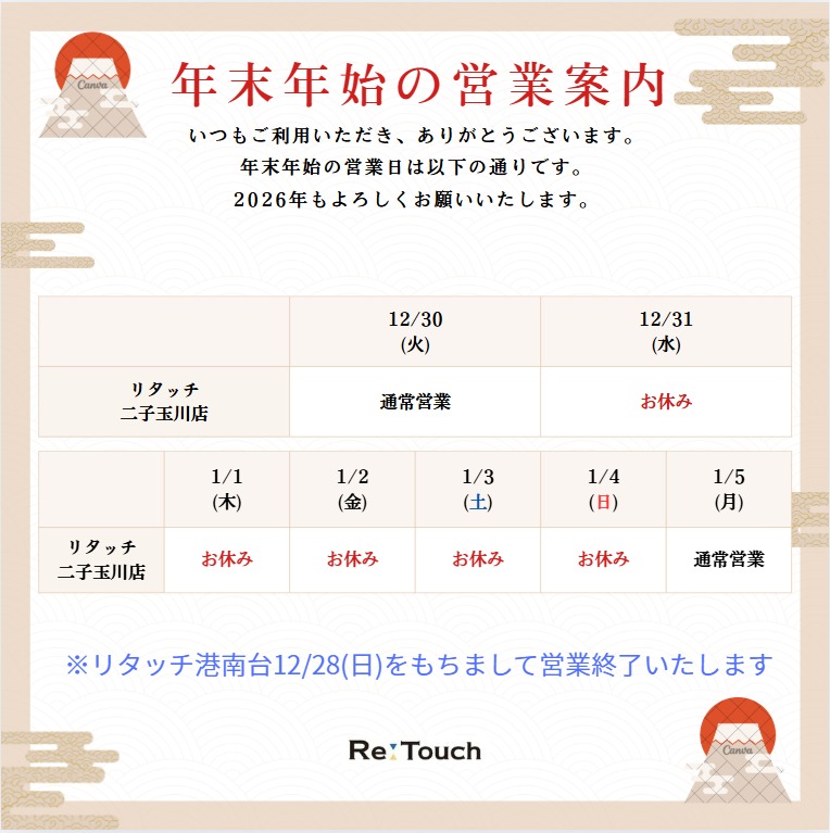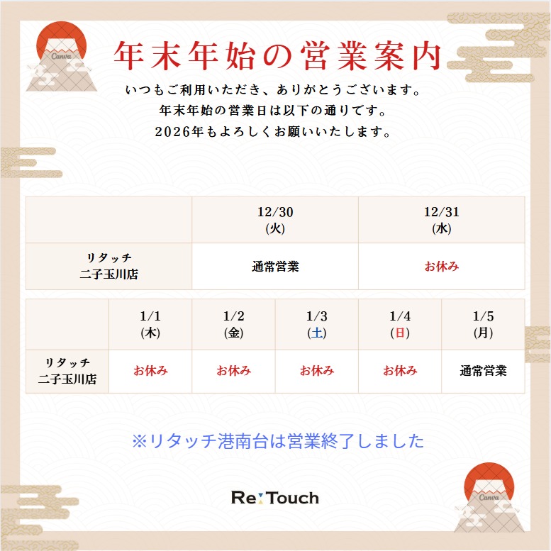 "Re Touch"のLINE@はじめました!お得な情報をお届けします。下のボタンで友だちに追加してください。